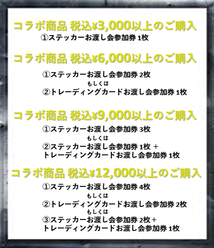 コラボレーション商品税込¥3,000購入ごとに「ステッカーお渡し会参加券」を1枚プレゼント